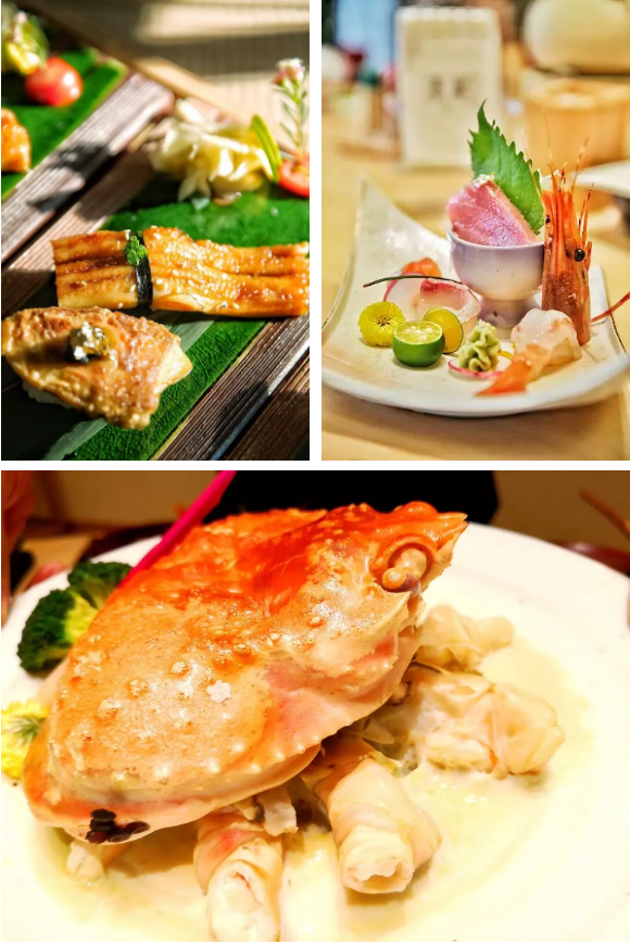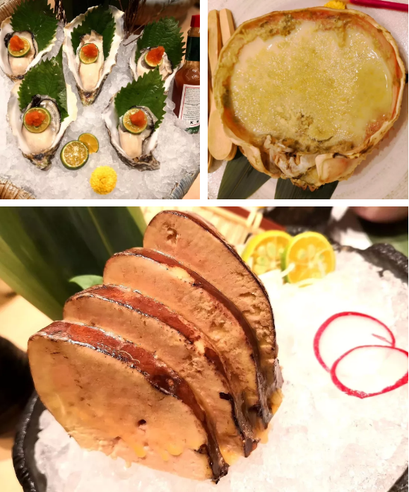 三文鱼北极贝刺身双拼,三文鱼厚切大片油脂丰富、北极贝新鲜脆爽;朴叶牛肉,牛肉冒着油花滋滋作响,烤叶子的香气浸透到肉中,鲜美可口;香煎鹅肝佐鲜果酱,鹅肝煎到金黄酥脆,搭配火龙果和芒果,别有风味;喜欢榴莲的朋友,可以尽情尝试一下芝士焗榴莲,感受榴莲的香气四溢、味美不腻。清葉已经成为食客们念念不忘的日料店。