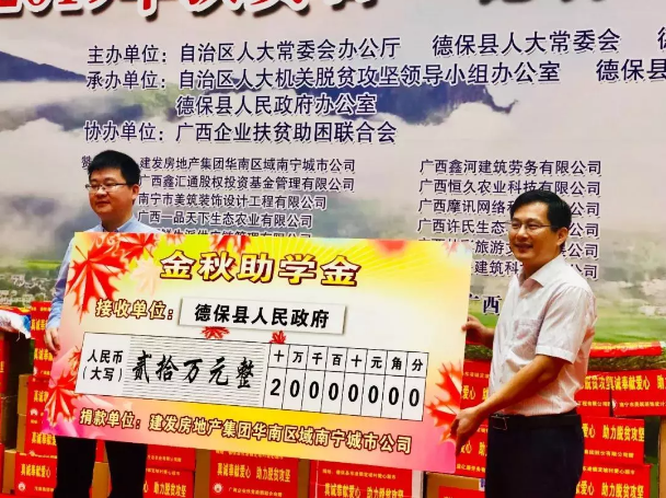 10月17日,建发房产在南宁开展爱心助学活动。本次慈善捐助行动是广西壮族自治区消费扶贫助力脱贫攻坚活动之一,也是今年建发房产慈善基金“雨润青苗”项目活动之一。