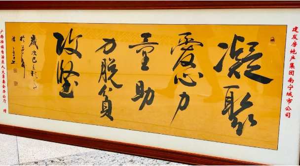 活动现场,主办方授予建发房地产集团华南区域南宁城市公司爱心牌匾,同时广西著名书法家当场赠予书法作品。