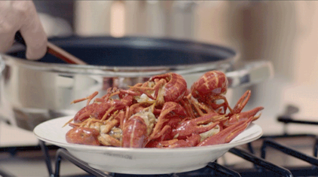 看着新鲜的食材在热油上滋滋作响,