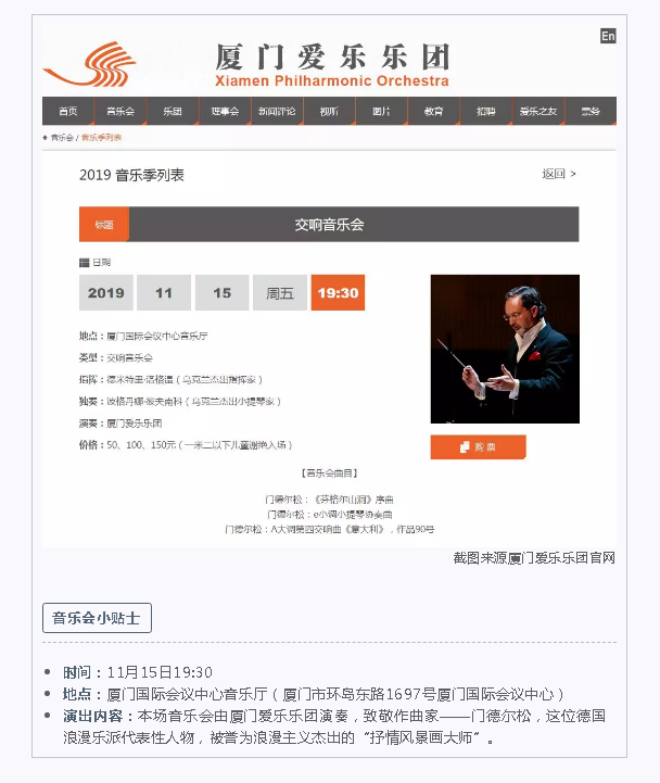 截图来源厦门爱乐乐团官网