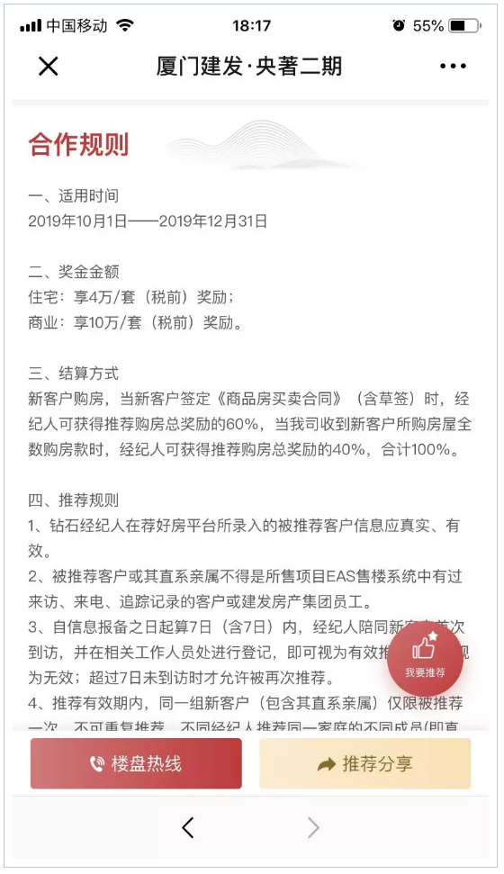 说明:推荐到访、成交抽奖将统一在12月13日进行线上抽奖。推荐佣金以荐好房平台各项目公布佣金为准。